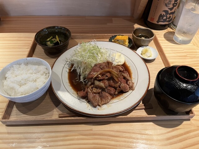 夜は居酒屋のようですが、ランチでは定食を提供しています。どのメニューも気になりますが、今回は豚の生姜焼き定食を注文しました。