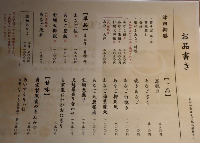 今回 私は津田御膳のあなご天丼、相方はあなご飯の単品を頼みました。
