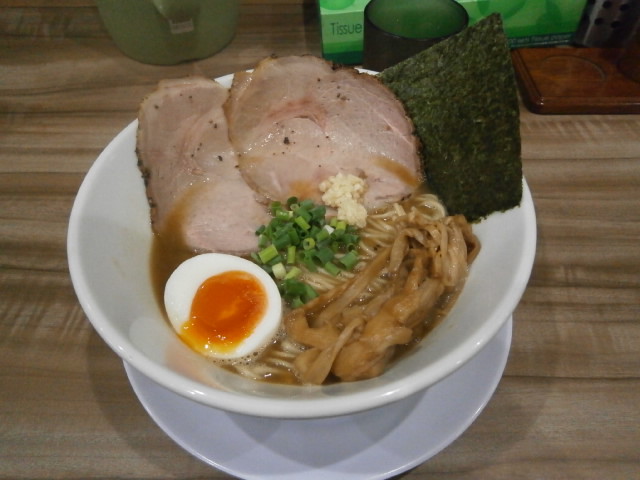 それに加えて具は刻みタマネギ・刻みネギ・半玉・磯海苔・刻みチャーシュー・メンマです。