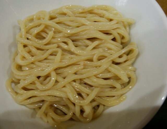 麺は極太麺と中太平打ち麺の2種類から選べるので、私は以前極太麺のつけ麺を食べた経験から、中太平打ち麺にしました。
