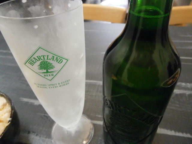 券売機で食券を買った後、それを店員さんに渡したら、瓶ビールについてハートランドか一番搾りか聞かれたので、ハートランドビールにしました。