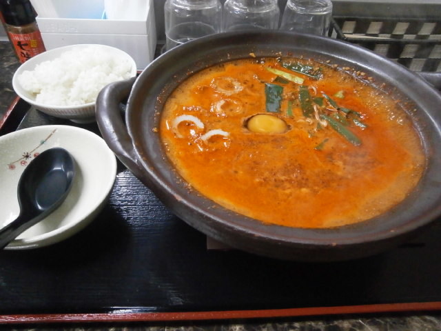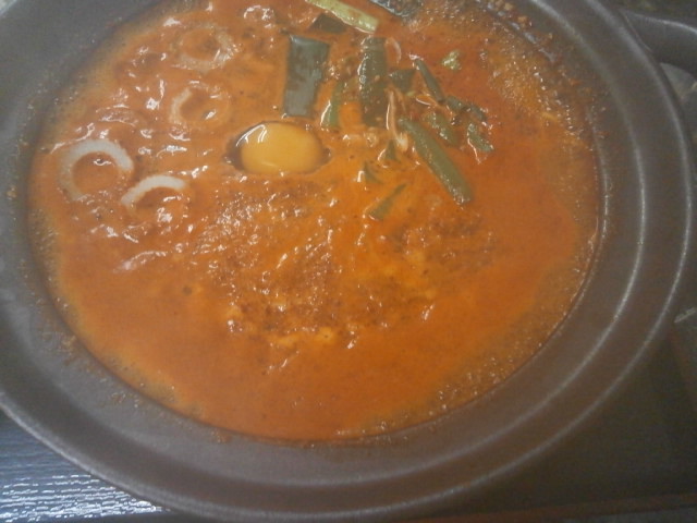 まずは、辛味噌とニンニクが入った鍋焼きラーメンです。