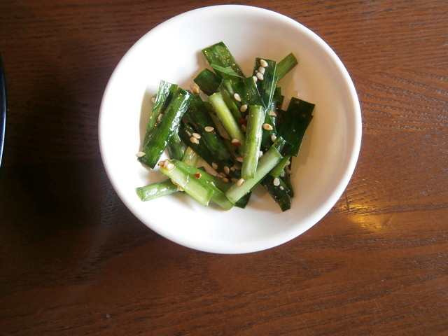 麺は細麺です。途中でニラを入れたり、一味唐辛子やフライドガーリックを入れて楽しみました。