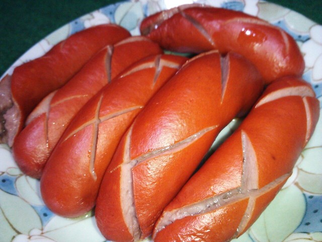 赤と白の二種類があるも、庶民な自分はお値段に少々ビビり、先ずは赤ウインナーよね!