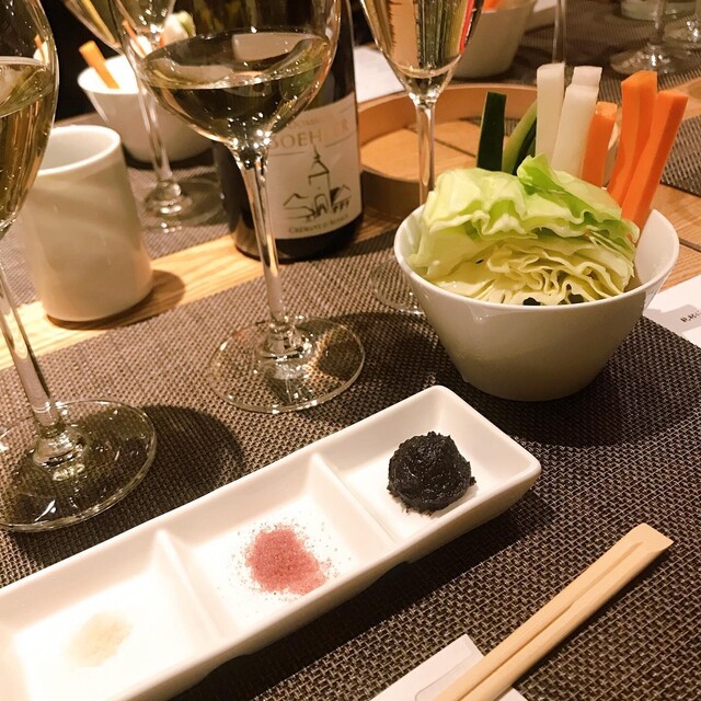 ワインのテイスティングの後は串揚げを楽しみました。料理に合うワインを考えて提供するのがソムリエさんのお仕事ですが、このお店がすごいのは、串揚げの食材や味付けを仕込みの段階でワインに合うように変えている所!料理に合うワインはどこでも楽しめるけど、ワイン先行で考えた串揚げもあるので、ワインが進む進む。