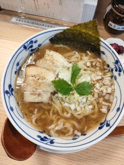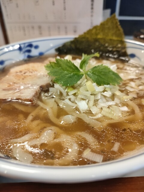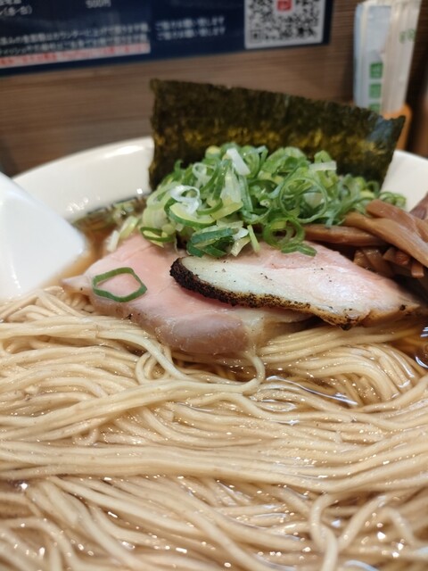 オォ!ぽてっと甘い鶏のスープ!真っ黒な醤油色をくぐり抜けて主張してくる。麺は平打ち細麺。触感つるつるでぷっちんとした歯切れ良さ。ストレートだからスープよく乗ります。チャーシューはとくに鶏のがしゅんっと...