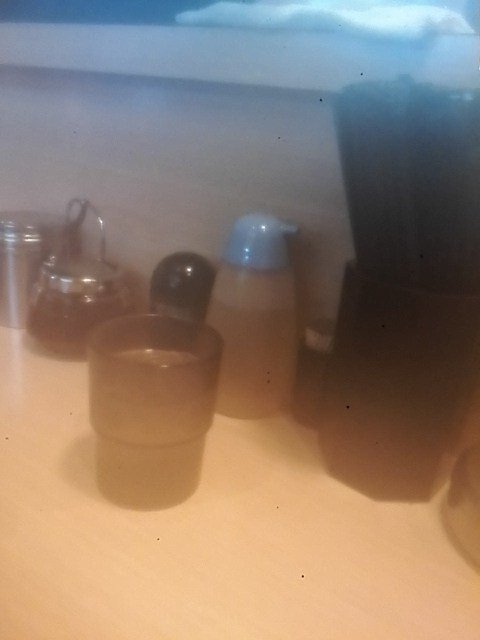 あっちゃ~~、スマホ水に落として瀕死!というわけで画像がおかしなことになっちゃってる事をお許しください。本体内部に浸水したのが蒸発し、レンズ内側が曇っちゃったのだな。これじゃあ「訪問の客観的証拠」にしかならないが、せっかく久々の当店の取材?だったのに画像がこんなんじゃお店にすまなんだ。