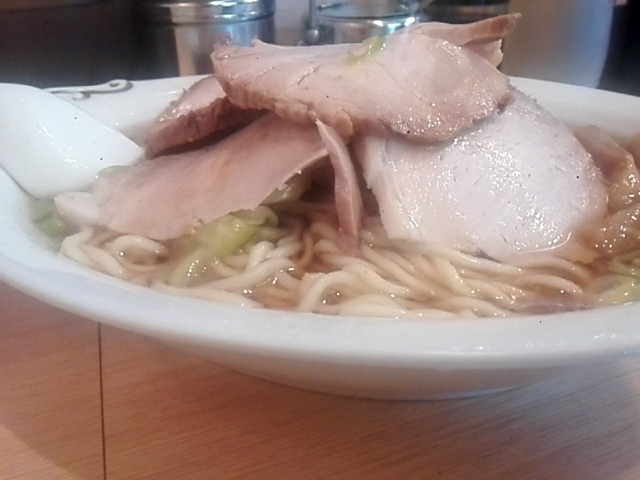 この日はチャーシュー麺、敢えての並盛り。なぜ敢えて並かというと、大盛りだとフツーの丼に入ってくるのに対し、並だとこのカレー屋っぽい器で出てくるからなのです。これを撮りたかった。いつか、この器になった経緯をお尋ねしてみたいものです。昔はよくカレーもやっててネ、ということなのではと睨んでますが、この方がスープの容量が少なく済むのヨ、とかいうことだったりしてw