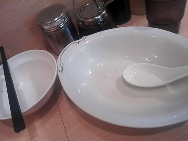 最後に、どうしても触れておきたいのが並盛り用の洋食器。カレー用?ひょっとして以前はカレーも出していたとか?看板も黄色だし、カレーとラーメン両方出す店って蒲田や高円寺にもあるから、ついそんなことを考えてしまうのでした。