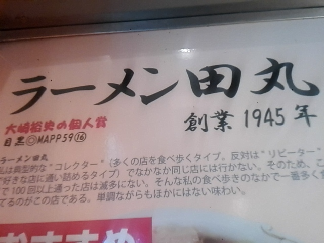 目黒はあまり用事のあるところではなかったのですが、ここ数年ポツポツ仕事が入り、たまたまこの店の前を通りがかり、20年ほど前に買ったラーメン本に掲載されていた店だと思いだし伺ったのでした。