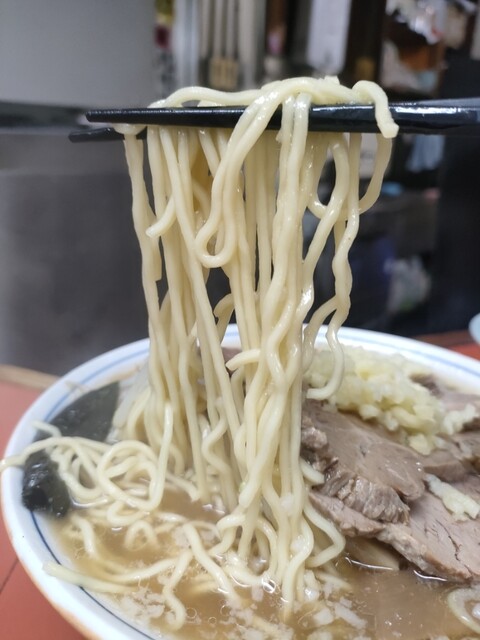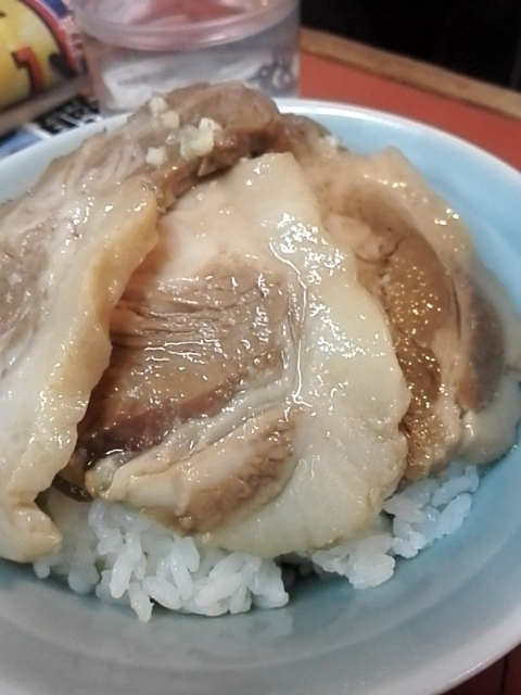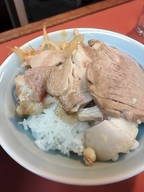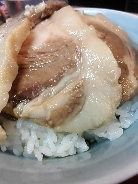ついでオンザライス!肉厚のチャーシューが、あまり温まってない時はむっちりもっちり食感、温まればホロッとトロッとする寸前のテクスチャーが楽しめる。肉の味も最近他では見ないような美味しさだ。べつに同業者ではないが、なんというところから仕入れているのかを知りたくなる。それともこれは、先代から受け継がれた秘義によるものなのだろうか。
