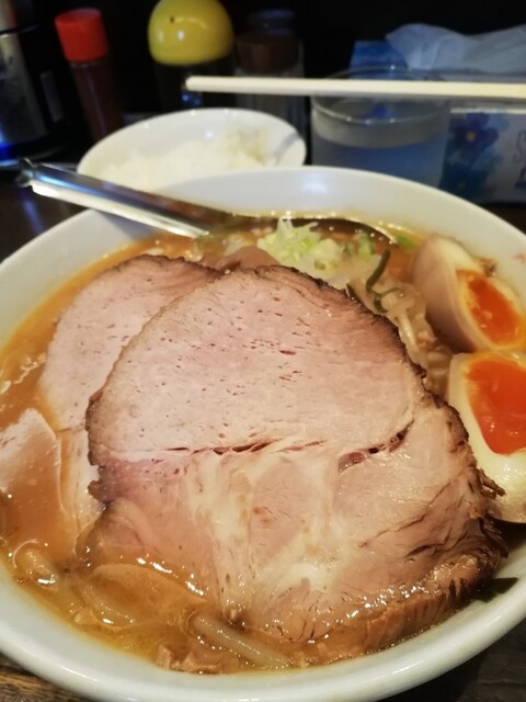 お店の外看板にあるように、当店はサッポロ味噌ラーメンの店です。本当に本物と書かれてるのはウソじゃない。なかなか力のあるスープです!味噌の分厚い旨味を突き抜けて、甘いコクが存分に感じられる!麺がサッポロラーメンにしてはちょっと細く見えるが、このスープならもっと太い方が釣り合うと思う反面、細いおかげでスープの持ち上げが多くメリハリを感じるのかな?とも。
