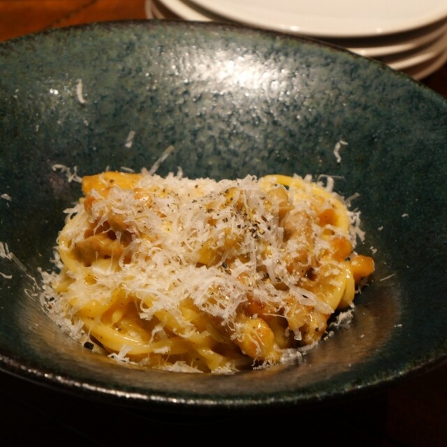 ◽店仕込みパンチェッタのカルボナーラ(800円)