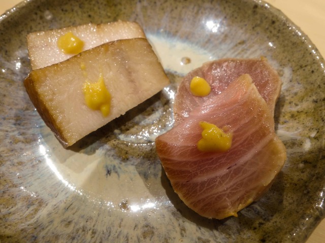 アンキモ,牡蠣の味噌漬け,筋子の味噌漬けです。