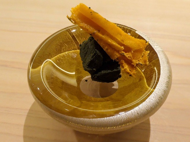「凍らせたアワビの肝とバフンウニ」