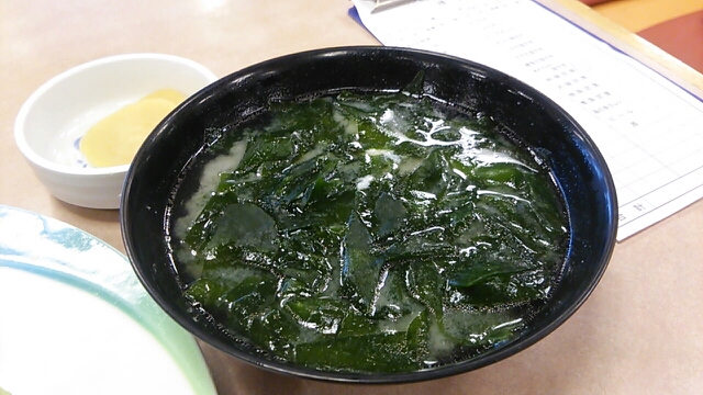定食に付いてる味噌汁はワカメ汁。これでもかってくらいのワカメが入ってた。出汁は魚のあらで取ってるみたいで、かなり満足。