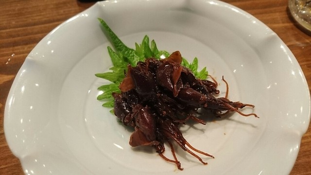 初めて訪問したyossyちゃん・金さん・たかよ姉さんに是非食べてもらいたい、イカのわた焼きを注文。