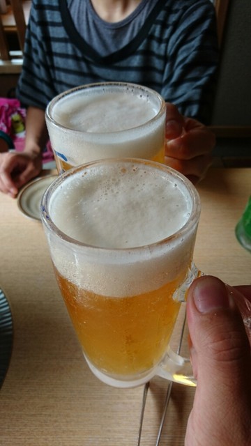 車内で美女の横で缶ビールをフライングしてしまったが、店で飲むとやはり美味しい♪