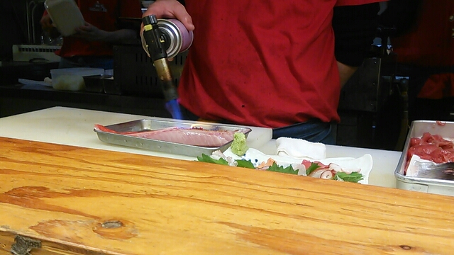 目の前で金目鯛を炙ってます。(201404)