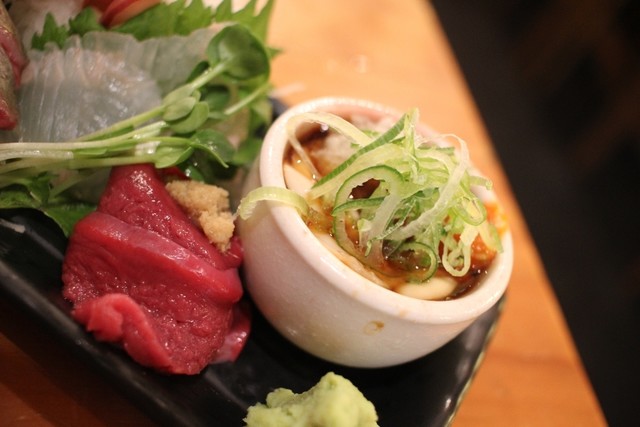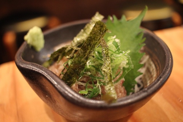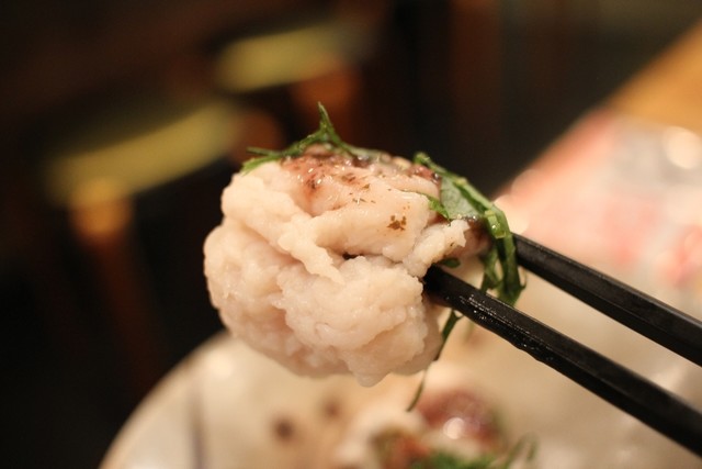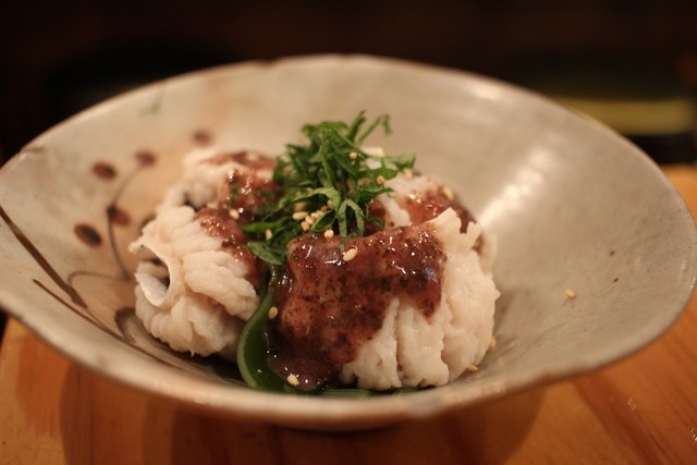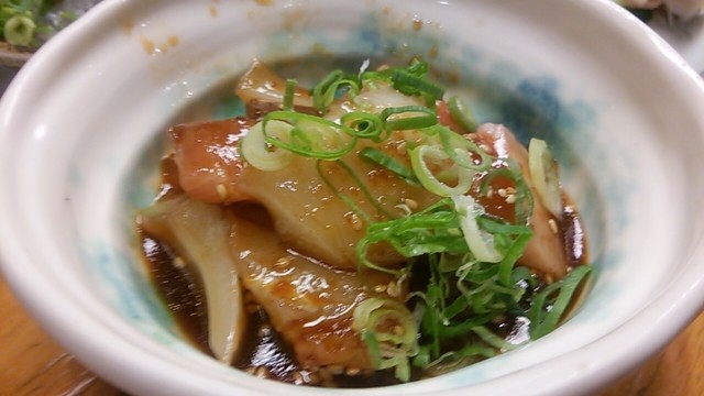 ・特にアジは鮮度に自信があるとの事。確かにいい脂の乗りで臭みは一切なく非常に美味しい。中落ちも居酒屋では珍しく、なかなかのもの。桜鯛はプリッと締まった身を噛みしめると鯛独特の甘味がジワリと染み出てくる。やりいかと水タコは感動する程ではないが、普通に美味しかった。