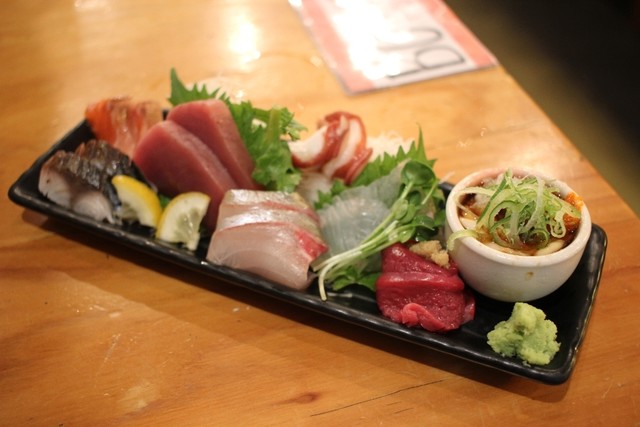 刺身はマグロやイカなどどこでも食べれるネタはいらないので、オススメのみを特注で盛ってもらったよ♪