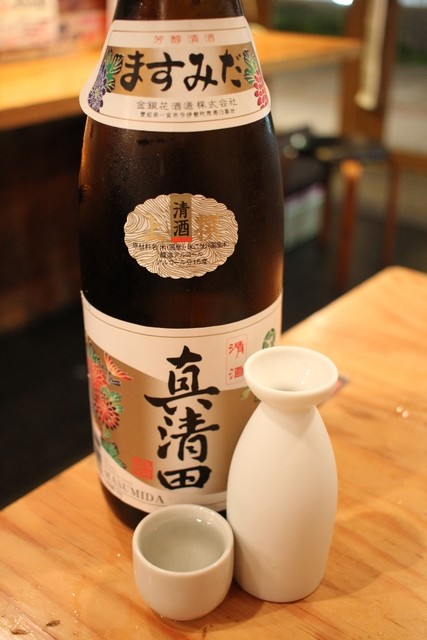 こんなイイ刺身を出されりゃ酒は日本酒でしょ(笑)ボードに「長珍」と書かれたので、何の躊躇いもなく「ナガチンちょうだい!!」と注文。これが店長に大うけしたそうで、実際には「チョウチン」と読むのだそうで。愛知津島の地酒なのに、ちょっぴり恥ずかしかった。フルーティーさと旨味が合わさってて、刺身に良く合う。結局3杯も飲んだが、追加は小声で「ナガチン」とお願いしたのは酔っ払いだから許してね^_^;