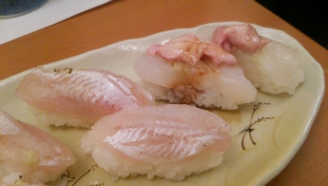 かわはぎは肝が乗り、塩と醤油で2つの味が♪肝の旨さも当たり前だが、引き締まった身も実に美味しい!!