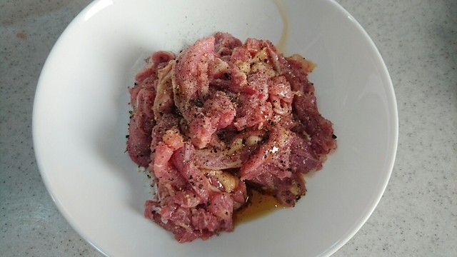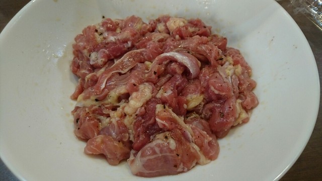 合わす具材はネギ・生姜・ニンニク・岩塩・黒胡椒・片栗粉。