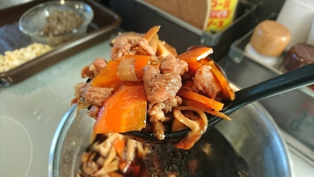 この時、先に煮汁を入れてから分量通りの水を入れないと、出来上がった時に悲惨な事になるよ(笑)