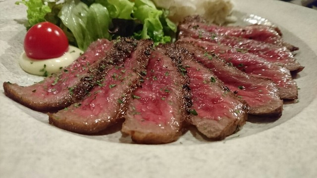 卵黄ソースはニンニクや味醂で味付けされたちょっぴり濃い目で甘い味だが、ローストビーフにピッタリな味♪