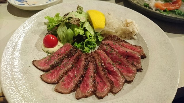 山わさびはツンとくる刺激がサッパリとしたローストビーフに変わり、これはこれで旨いね!!