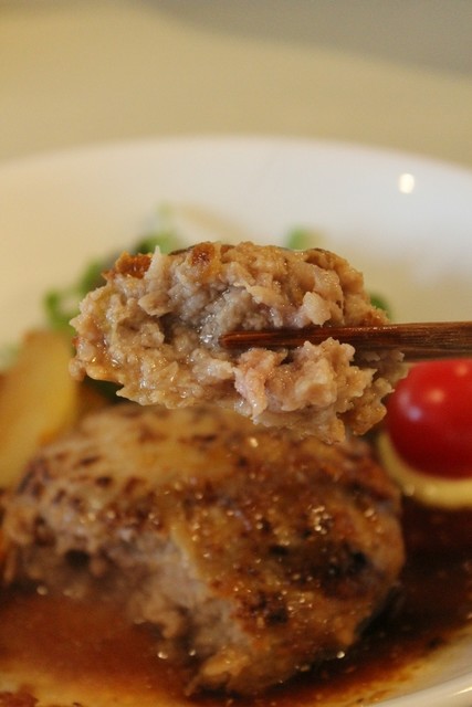 箸で割ろうと押さえただけで、肉汁が半端なく流れ出す\(◎o◎)/