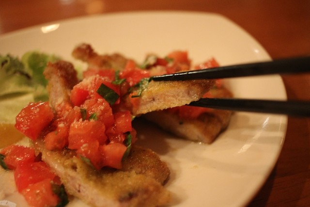 ジューシーなロース肉を使ったカツレツ、スパイスとトマトが融合した旨さがたまらない!!