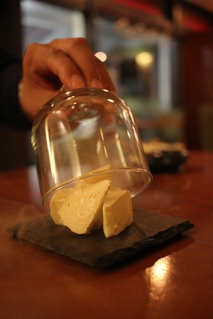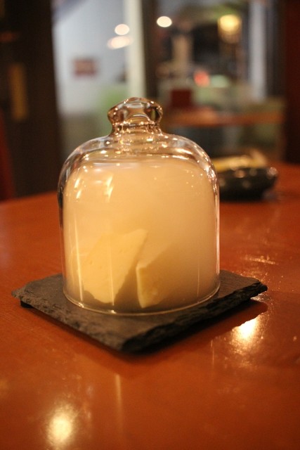 皿に盛ったチーズをグラスで蓋をして、燻された状態で運ばれてきたのには驚いたね!!