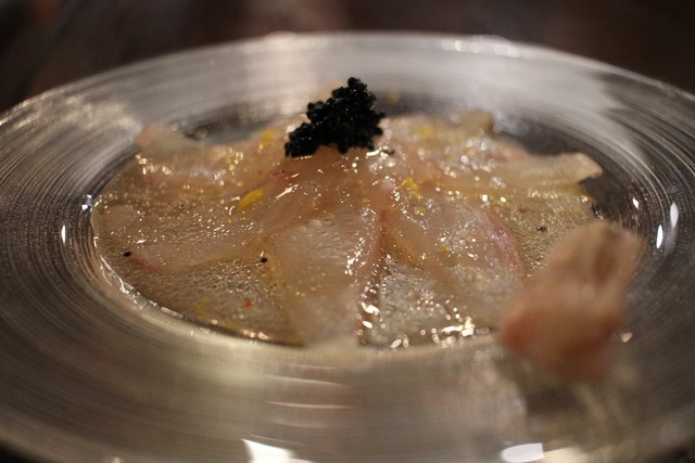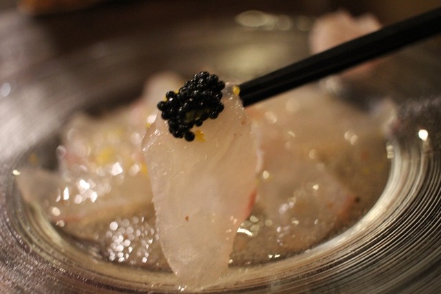 平目のカルパッチョ、キャビアまで盛られて豪華に登場\(^^)/