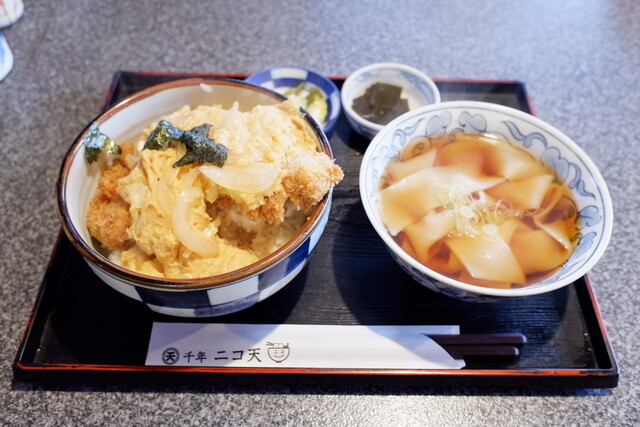 相棒オススメのカツ丼に、セットの麺は大好物のきしめんに変更して1200円也。
