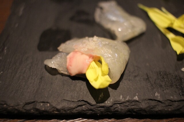 ギアナ海老は初めて食べたが、火が入るとキスマークが現れる。