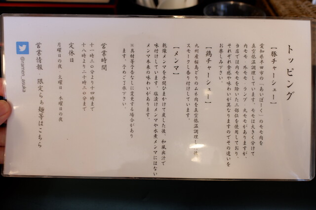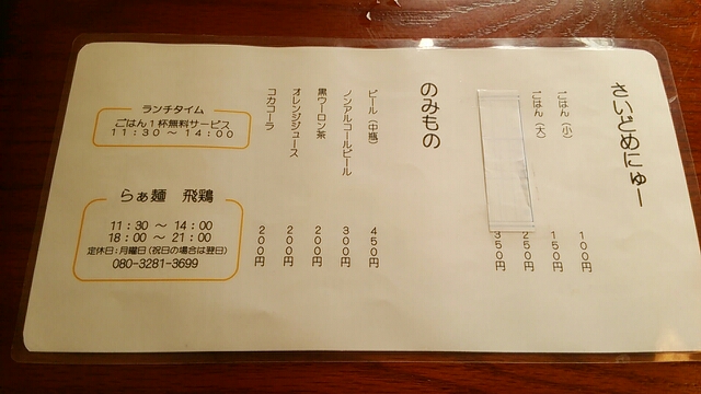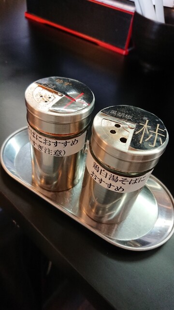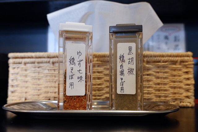 メニューや値段は変わりはないが、新たに鶏白湯用の調味料2つが卓上に置かれてた。