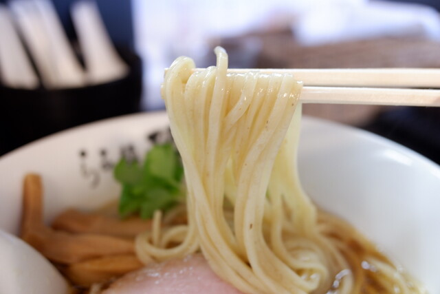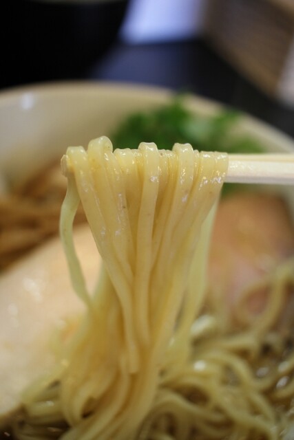 自家製麺は小麦が香り、食感が良い茹で加減。以前より舌触りが滑らかになったように感じた。