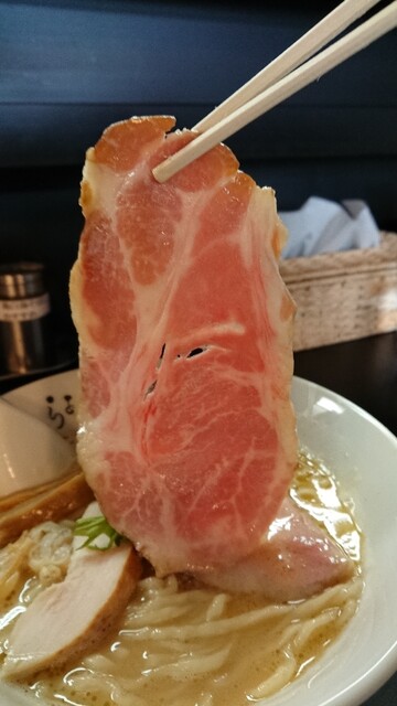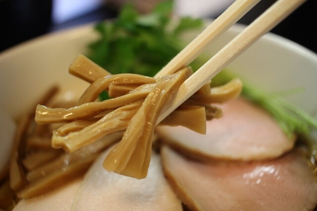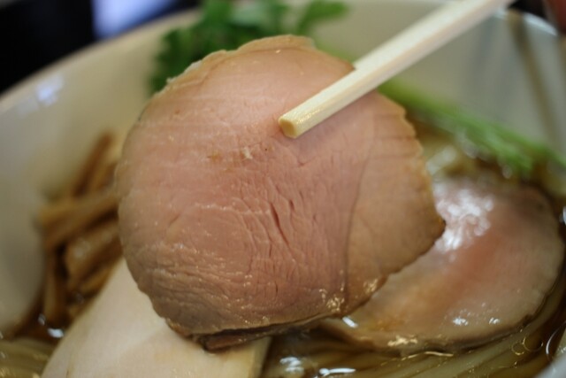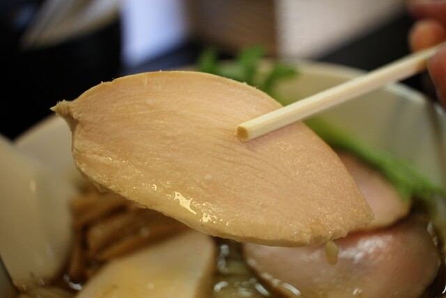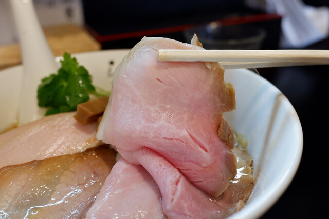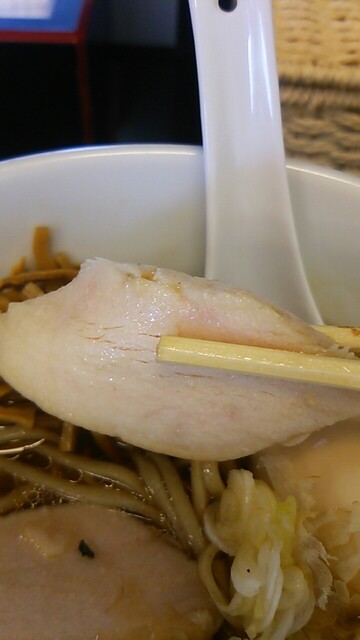 鶏の繊維は残し、でも口の中でとろける感じ。1杯のラーメンで2種類のチャーシューの味や食感の違いが味わえるのは良い。