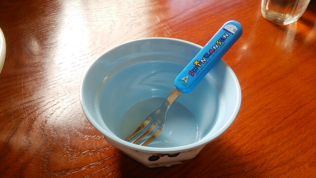 待ってる間に子供用の食器類を持ってきてもらえた。もしかして子供用の物はないかな~と思ってたが、嬉しかった。