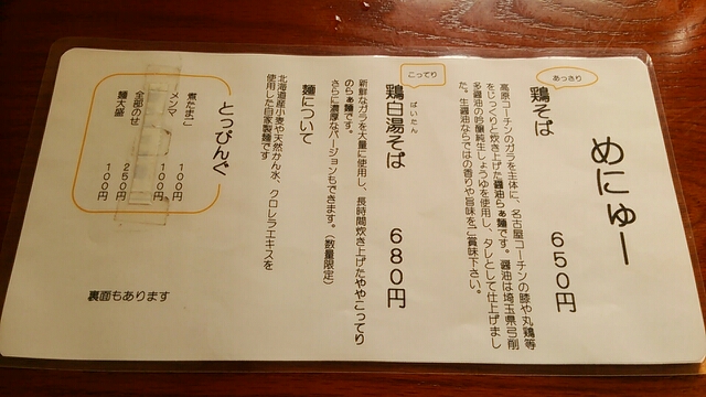 鶏白湯そば700円、大盛100円、全部のせ250円