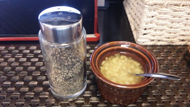 刻みニンニクと黒胡椒のように見えたが、鶏白湯用だったので今回は使用しなかった。