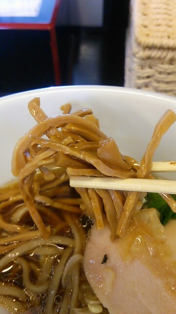最初見た時は油が多いと思ったが、スープを一口飲むと意外にアッサリしてた。鶏の風味も感じるが、醤油の方が強く感じる。メニューによると、この醤油にこだわりがあるみたい。香りが良く、黒胡椒もアクセントの一つに感じた。上品な中華そば、そんな一杯だった。