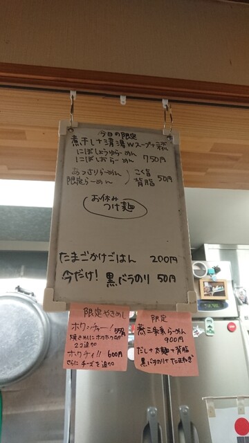 もう1点は限定メニューが登場した。今回に関しては前日から「しょうゆ」と決めてたので、改めてメニューや卓上周りを見ずに注文。その後お手洗いに行ってから新たなメニューの存在に気付いたので、時すでに遅し(>_<)なので次回レビューしたいと思う!!