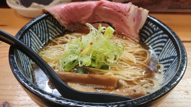 スープはかなりの粘度があり、鶏の旨味が十分引き出されてる。しょうゆと同様で焦がしネギがアクセント。醤油で口当たりがとても良く、自家製の細麺との相性もピッタリ!!麺がかなりのスープを持ち上げるので、替え玉1回目を食べ終わる頃にはスープはほとんどなくなってた。