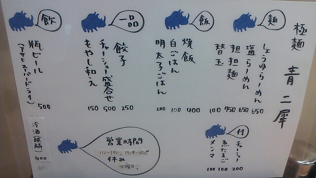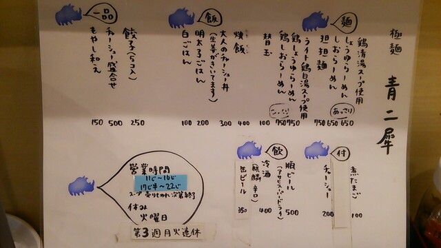 行く前にブログをチェックしてみたら一周年との事。つまり美味しいラーメン屋を見付けて1年になるという事。地元では食べログ目当てで未開のラーメン屋ばかりだが、出先で行く店は限られてしまう。恐らくこの1年で一番多く通ったラーメン屋が青二犀であろう。仕事だからってものあるけどね。