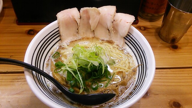 鶏しおラーメンは鶏しょうゆと同様に鶏白湯であり、鶏の濃厚な旨味が詰まったクリーミーなスープが堪能出来る。こちらも焦がしネギがいいアクセントになってるが、塩ラーメンをあまり好んで食さない(味が分からない)私からしたら少ししょっぱく感じるスープだった。