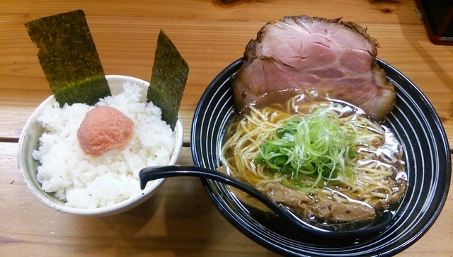 注文はお目当てのしょうゆらーめん650円と、2回に1回は注文してる明太子ごはん200円を注文。キッチンから近いカウンターなので、店主が力を込めて作る様子が間近に見れます♪
