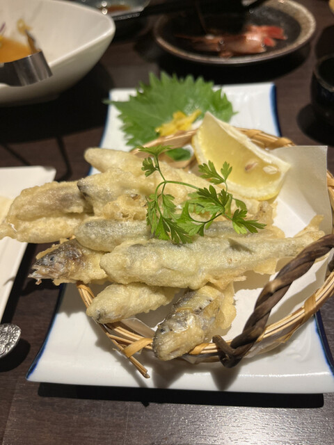 最近、稚鮎よくあちこちで頂いてるけど、揚げた稚鮎は初!揚げるとさらに美味しいのね!最高だったd(^_^o)